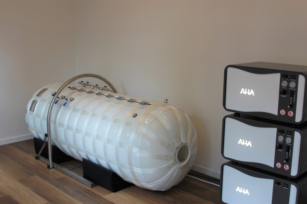We operate an AHA Hyperbaric Chamber, AHA being the world leaders in portable hyperbaric chambers. The chamber is spacious enough for an adult and child